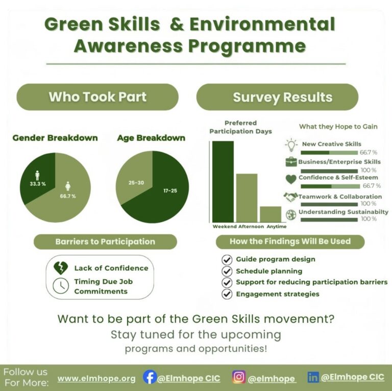 Research Research This section outlines the research process behind our projects. It includes surveys, posters and reports. This helped us to identify your needs and effectively arrive to the most suitable solution. Financial Literacy Financial Literacy Survey Access it here – Link to Survey Financial Literacy Report Summary and Findings Green Skills Green Skills Workshop Survey Please complete the survey linked here – go to survey. Green Skills Report Summary and Findings Get Involved Your time, skills, or support can make a difference.Join us in building more inclusive and connected communities. Volunteer